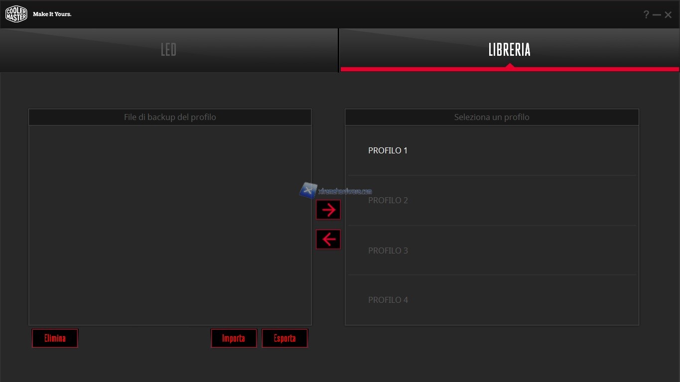 Il secondo Menù ‘’Libreria’’ ci permetterà di eseguire un backup dei profili e quindi avere sempre eventuali profili personalizzati creati.