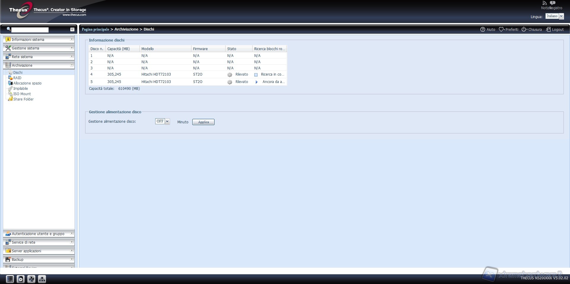 Thecus N5200XXX: software e configurazione
